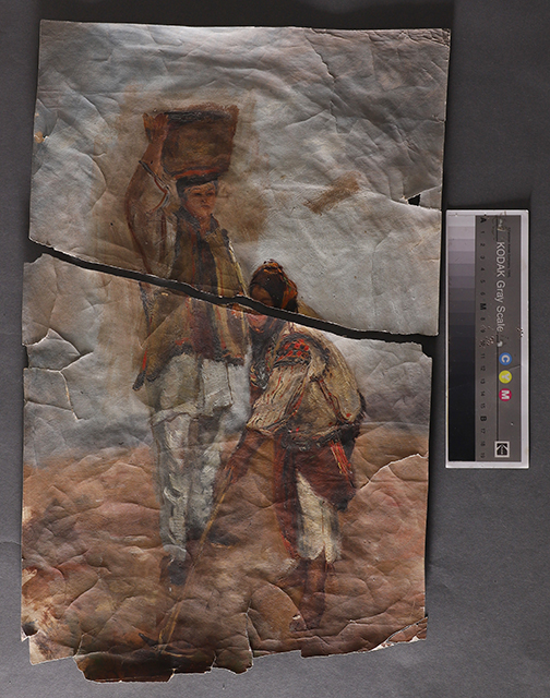 Особливою складністю було те, що на звороті зберігся авторський начерк, який не можна було закривати. Це унеможливлювало застосування поширеної техніки дублювання картини на щільнішу основу, тож реставратор розробила індивідуальні методи порятунку твору. Кожен розрив і кожна тріщина фарбового шару чи паперу вимагали окремої делікатної роботи. Було укріплено як основу, так і сам живописний шар, а всі матеріали та технології підбиралися з урахуванням особливостей техніки виконання.