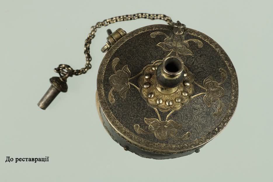 У відділі наукової реставрації творів з тканини та шкіри завершено реставрацію натруски в срібній оправі з Чернігівського обласного історичного музею імені Василя Тарновського. Порохівниця, імовірно,індо-іранського типу (Daba-e-barut, або Barutdan) датована XVIII ст. І хоч автор невідомий, її ошатне і чаруюче оздоблення свідчить не тільки про практичне застосування цього предмету, а й про художню цінність, яку він несе. Індо-іранський тип порохівниць був поширений територією Османської Імперії, але з її активною ескалацією на територію Війська Запорізького такий тип натрусок став частим у використанні високопоставлених запорожців. Для нього характерне застосування як основи мушель наутилуса, дерева, зашитих міхурів великих тварин і оздоблення оправи металами із орнаментацією.