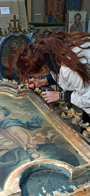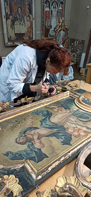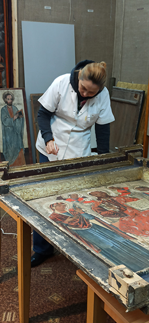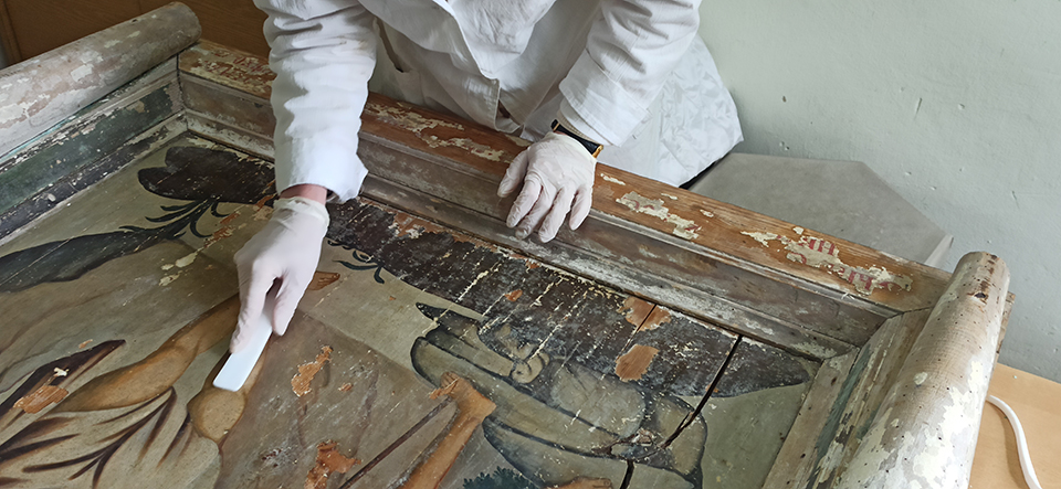 Проведено укріплення левкасів, поліхромії та фарбового шару музейних предметів, а також усунено ущільнені пилові забруднення.