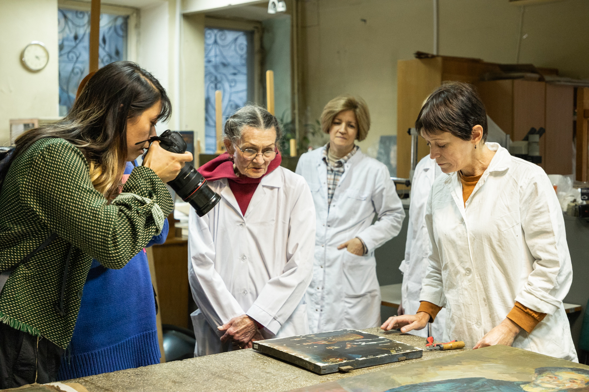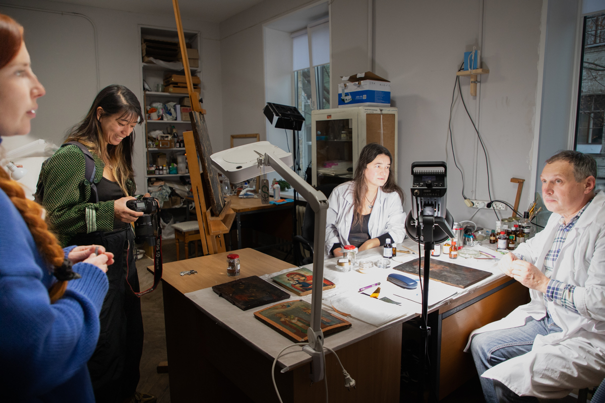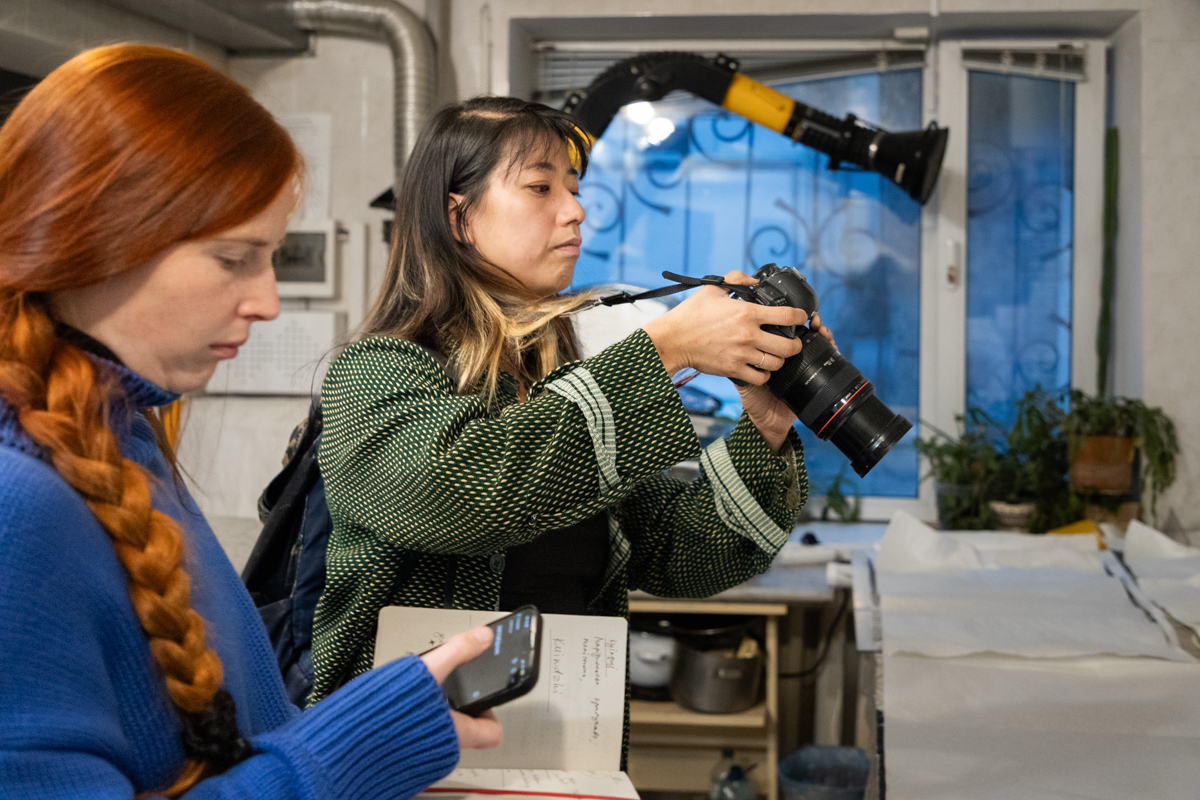 7 листопада Національний науково-дослідний реставраційний центр України відвідали американська фотожурналістка тайванського походження Канг-Чун Ченг та журналістка Тетяна Бур’янова, які працюють над матеріалом для Nature Journal у межах програми International Women’s Media Foundation (IWMF). Головною метою їхнього візиту було дослідити та висвітлити, як українські фахівці рятують культурну спадщину в умовах війни.