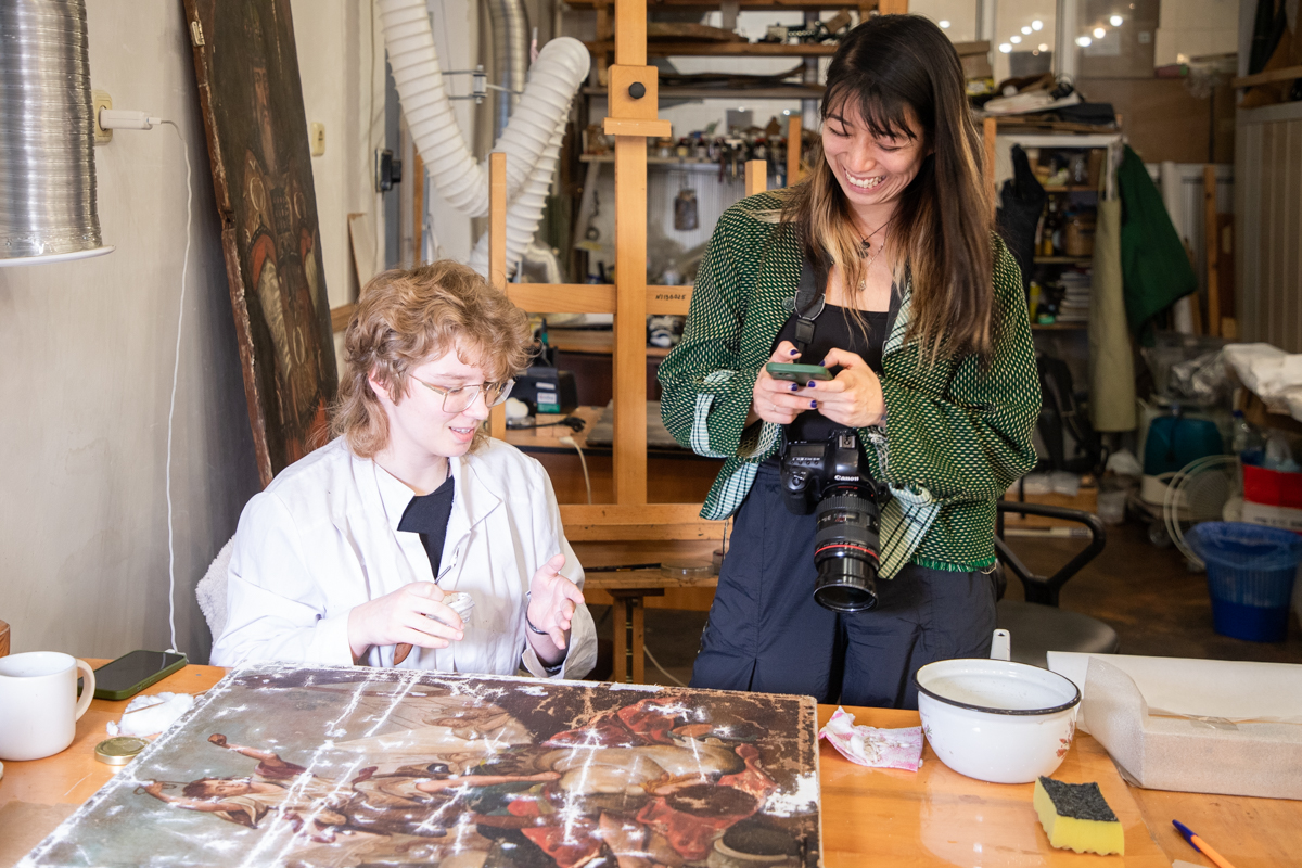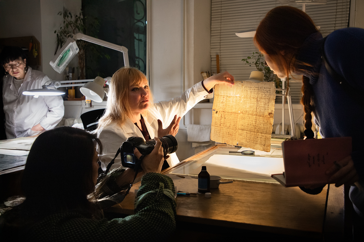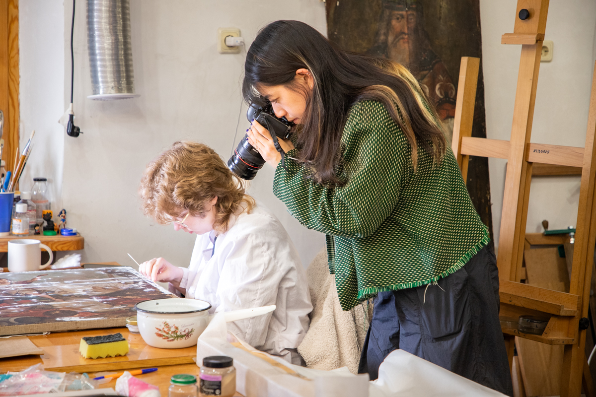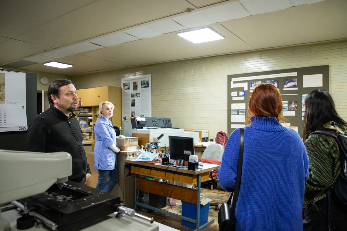 7 листопада Національний науково-дослідний реставраційний центр України відвідали американська фотожурналістка тайванського походження Канг-Чун Ченг та журналістка Тетяна Бур’янова, які працюють над матеріалом для Nature Journal у межах програми International Women’s Media Foundation (IWMF). Головною метою їхнього візиту було дослідити та висвітлити, як українські фахівці рятують культурну спадщину в умовах війни.