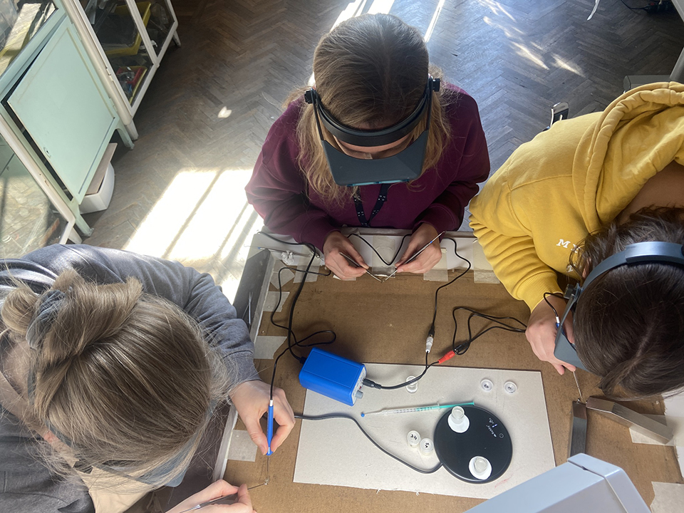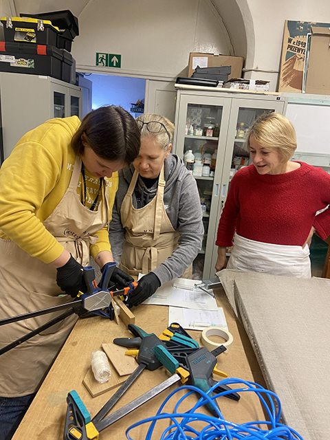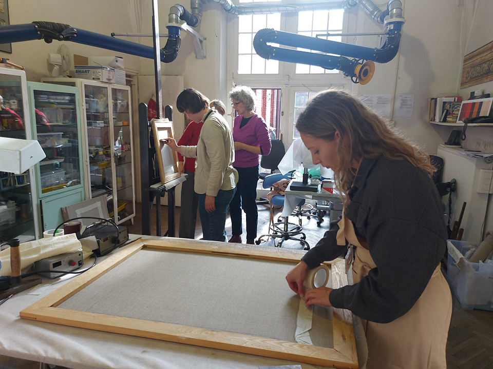 Програма стажування цієї осені стала підсумком річної роботи (2024–2025) та складалася з двох частин. Протягом двох тижнів учасники спільно з польськими колегами працювали в майстернях, де на практиці оволоділи методиками, з якими ознайомилися на попередніх воркшопах. Головним завданням було закріплення навичок на спеціальних зразках живопису. Окрім уже знайомого методу «Mist-Lining», художник-реставратор нашого Центру детально вивчила та відпрацювала інші технології. Зокрема, методику «Thread-by-Thread Tear Mending» (від Петри Деймут), що дозволяє зводити прориви полотна з максимальною точністю та мінімальним використанням клею, традиційну італійську техніку дублювання «Glue Pasting» (від Матео Россі Доріа), а також метод «BEVA-flocking», завдяки якому можна порівняти властивості клейових систем та їхню поведінку в реставраційному процесі. Разом із Анастасією Богдан учасниками від України були — Катерина Коваль з Національний музей історії України музею історії України та Анна Марченко з Національний заповідник Києво-Печерська лавра.