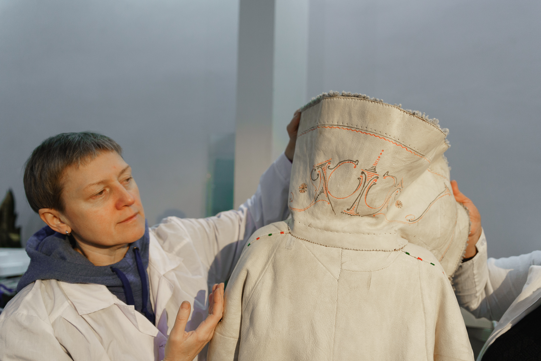 Протягом 16–19 грудня Тетяна Мінжуліна та художник-реставратор цього ж науково-дослідного відділу Олена Кіслих проводили реставраційні заходи безпосередньо в стінах музею над предметами з груп зберігання «Тканини» та «Шкіра». Зокрема, фахівцями було відреставровано жіночий весільний кожух з білої шкіри, прикрашений аплікаціями, вишивкою та розписом, і саквояж лікарський зі шкіри та тканини.