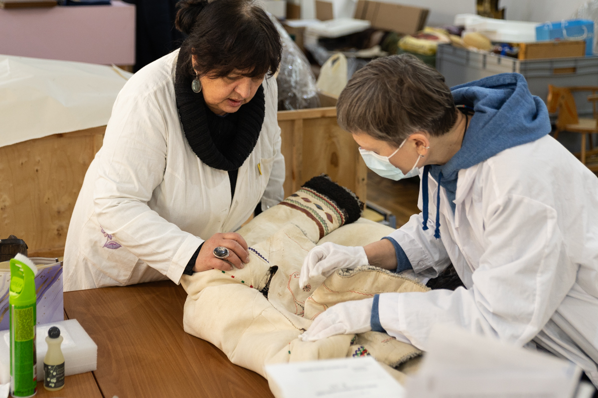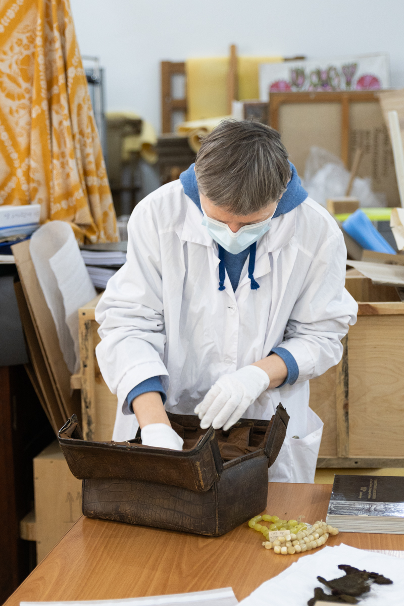 Фахівці задокументували поточний стан збереженості предметів та визначили обсяг необхідних реставраційних заходів. У межах роботи з цим комплексом завідувач науково-дослідного відділу реставрації творів з тканини та шкіри Тетяна Мінжуліна виконала реставрацію унікальної археологічної тканини, у яку були загорнуті артефакти.