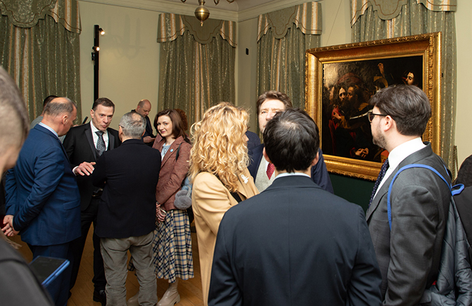 На захід були запрошені представники понад 20 дипломатичних представництв іноземних держав, Папський нунцій в Україні, високопосадовці та діячі культури. Урочисту частину відкрила генеральний директор заповідника Неля Куковальська, а презентацію провела генеральний директор ННДРЦУ Світлана Стрєльнікова. Вона зауважила, що мистецтво часто стає об’єктом злочинів, як це сталося з представленим полотном, яке у 2008 році варварськи вирізали з підрамка та викрали з Одеського музею західного і східного мистецтва. Сьогодні ж, в умовах війни, загроза нищення культури стала ще масштабнішою. Заступник міністра культури Іван Вербицький підкреслив важливість збереження культурної спадщини як індикатора нашої ідентичності і національної безпеки.