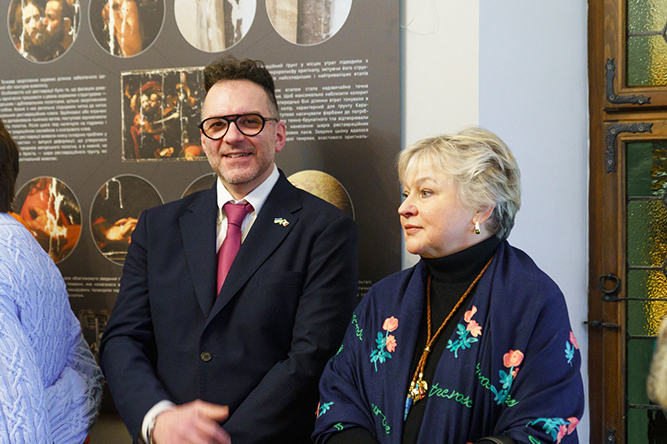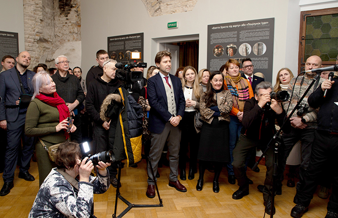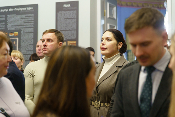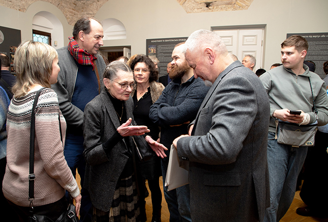 Почесні гості заходу мали змогу ознайомитися з експозицією, де інформаційні стенди наочно демонструють стан полотна з моменту передання до ННДРЦУ, результатами проведених досліджень та комплексного відродження. Вони поспілкувалися з фахівцями, які причетні до фахової реставрації та надання твору експозиційного вигляду.