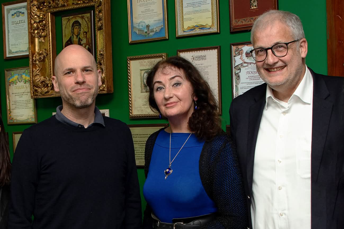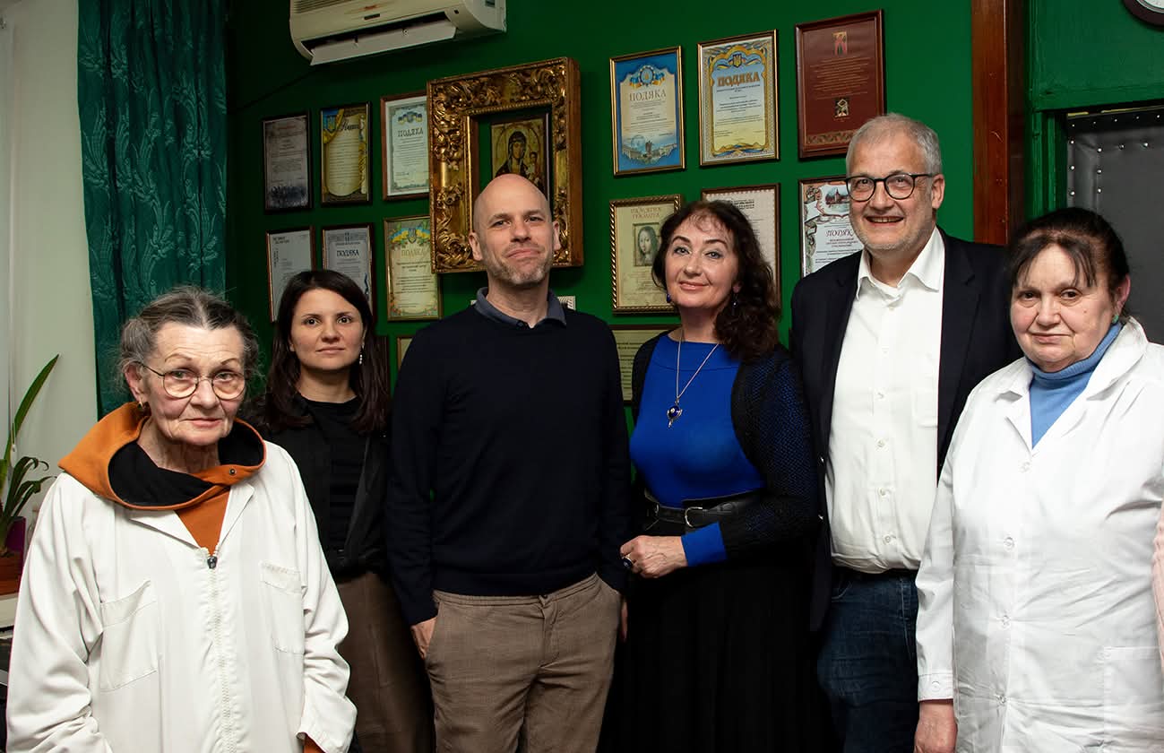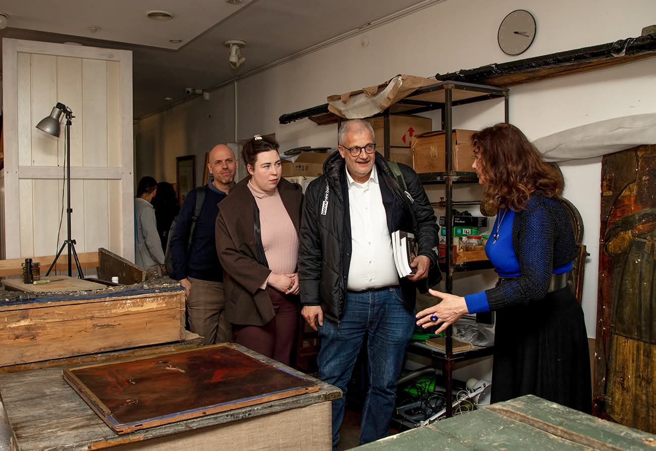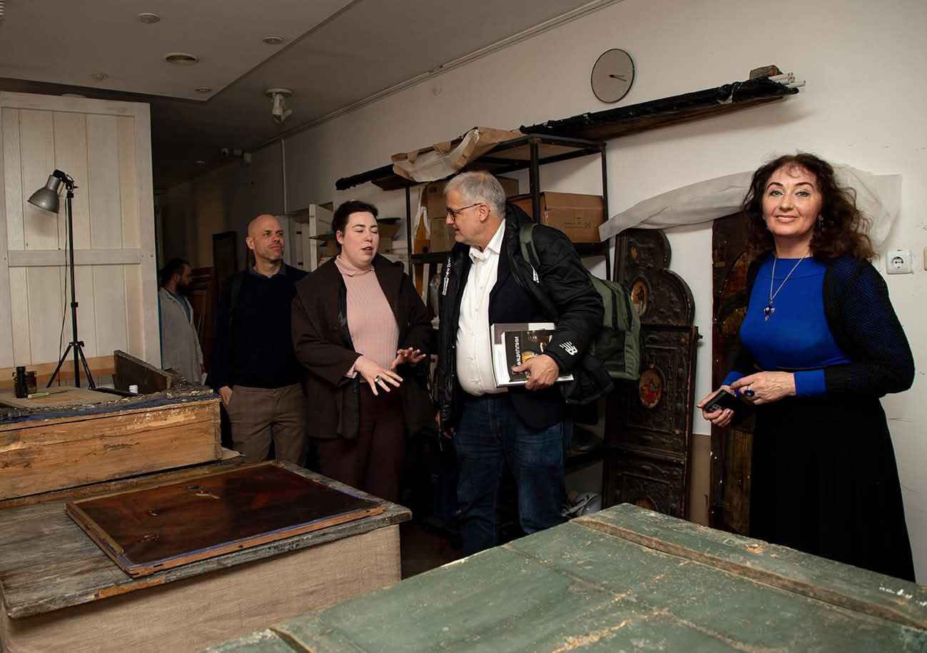 Національний науково-дослідний реставраційний центр України в Києві з офіційним візитом відвідали провідні фахівці у сфері реставрації з Німеччини. Серед почесних гостей був професор Штефан Шимон, відомий німецький хімік-консерватор, очільник науково-дослідної лабораторії Ратгена при Державних музеях Берліну та ключовий експерт ICCROM (віце-президент у 2017–2019 роках). До Центру завітав також Фабіан Мюльталер, директор Goethe-Institut в Україні – культурного інституту Федеративної Республіки Німеччина, що сприяє міжнародній культурній співпраці та підтримці професійних ініціатив у всьому світі. Це перший візит спеціалістів з Німеччини до головної організації Центру в Києві, метою якого було детальне ознайомлення з діяльністю художників-реставраторів і науковців в умовах війни, а також вивчення проблем, з якими щоденно стикається заклад у надзвичайно складний період. Окрім того, гості прагнули отримати актуальну інформацію про стан реставрації предметів Музейного фонду України та визначити пріоритетні напрями роботи Центру в умовах війни.